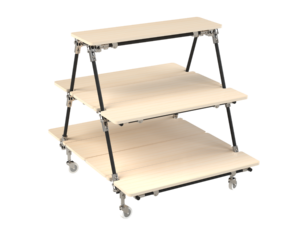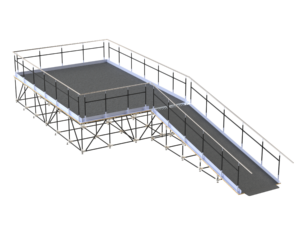 Provides a stable and adaptable space for performances, presentations, or public events. Thanks to its modular design, it can be quickly assembled in various sizes and shapes as needed. Stairs, ramps, railings, or benches can be easily added to the stage as required, creating a complete and safe environment for any type of social event or professional gathering for everyone.