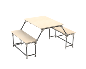 Combines seating and dining in a single compact unit. It is used in parks, gardens, or public spaces for family and social activities. This is an ideal solution for events and gatherings both indoors and outdoors. The table’s dimensions and capacity are variable, and tables can be connected together to create longer, continuous dining sections for any professional environment.