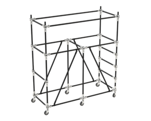 Provides a safe and stable workspace at height for construction or repair work. It allows easy access to different parts of a building or structure. Most commonly used for interior work; however, for exterior use, the structure can be equipped with larger wheels and reinforced brakes, ensuring high stability even on uneven outdoor surfaces for any professional environment.