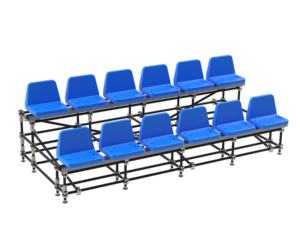 Provides organized seating for spectators during sporting or cultural events. The modular design allows for easy assembly, disassembly, and precise adjustment of size according to the expected number of spectators. The structure is designed with an emphasis on safety, stability, and space efficiency to ensure a perfect view for every guest and a professional environment for all.